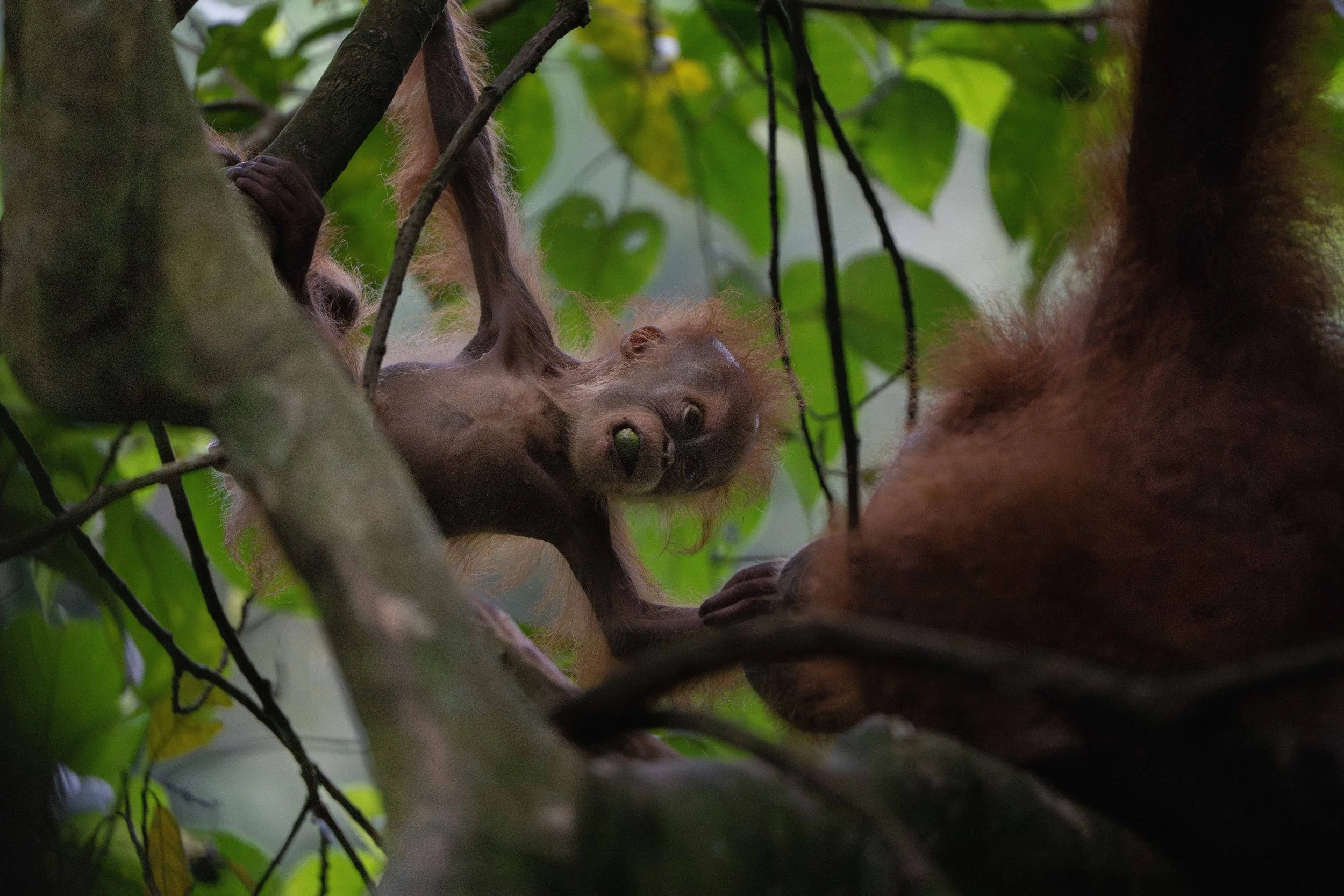 Snow-covered mountain peaks during sunset or sunrise, with warm light illuminating the edges of the summits. View fullsize
